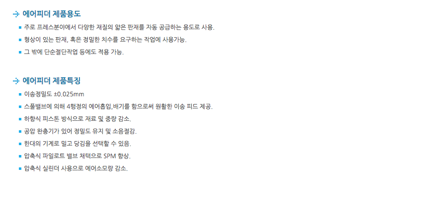 주로 프레스분야에서 다양한 재질의 얇은 판재를 자동 공급하는 용도로 사용