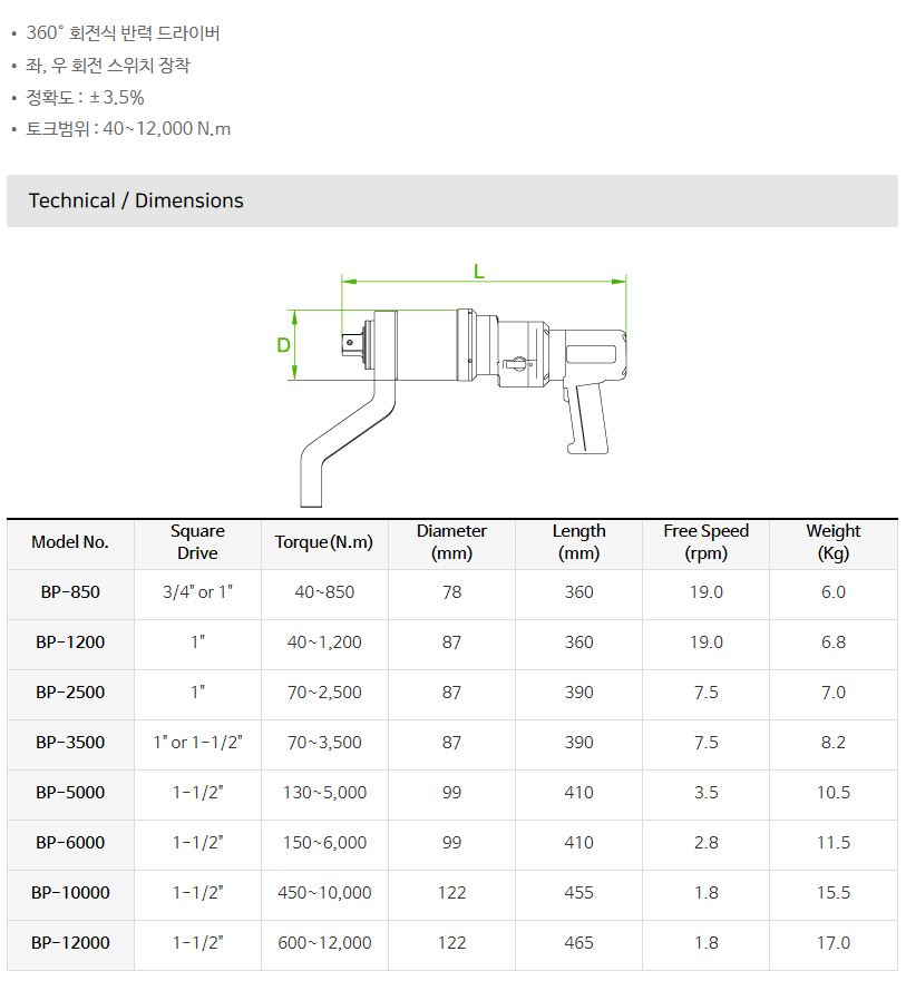 | 제품명 | BP시리즈 에어토크렌치 | ||