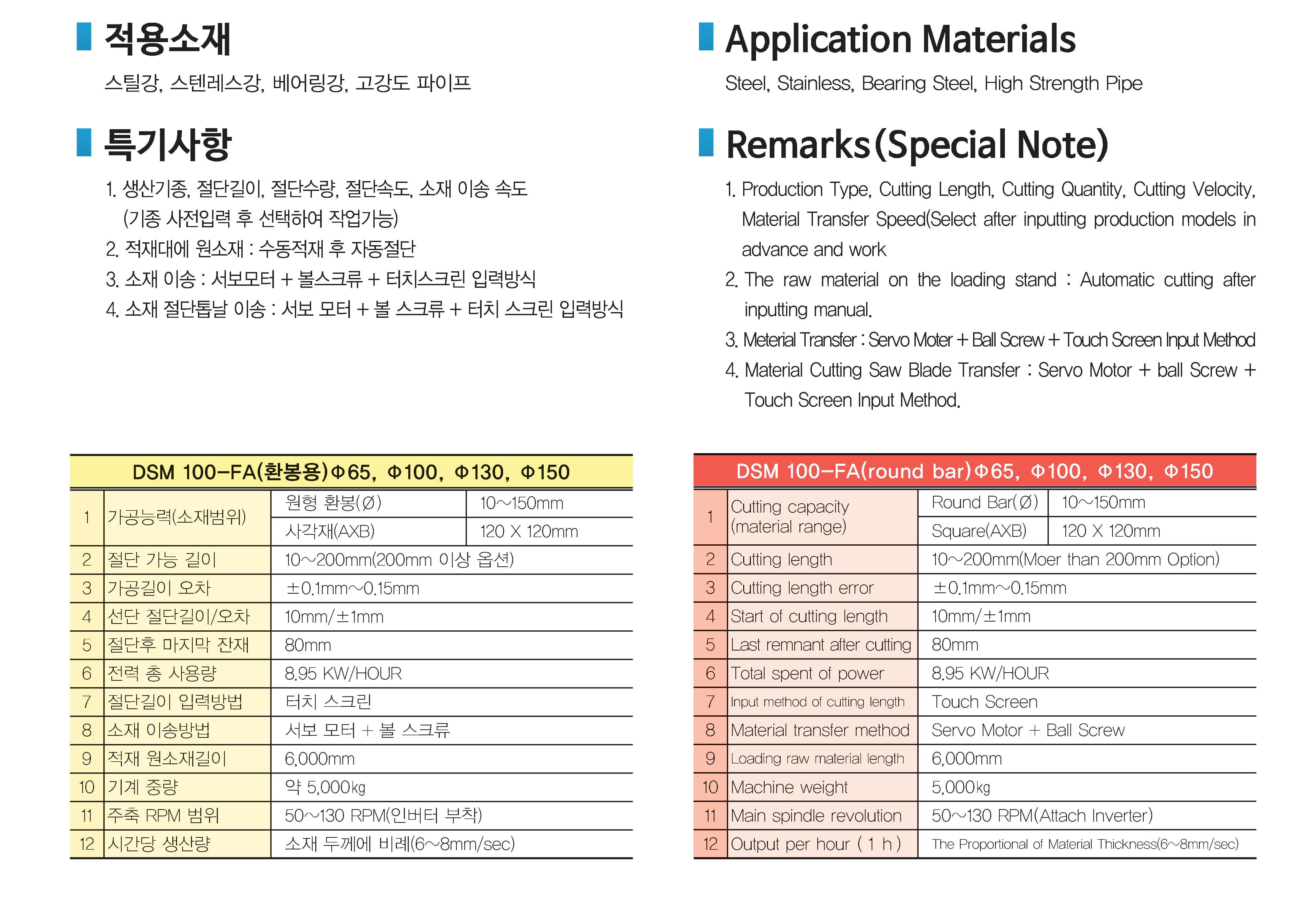 DSM 100-FA (Ø65, Ø100, Ø130, Ø150) : 환봉절단기