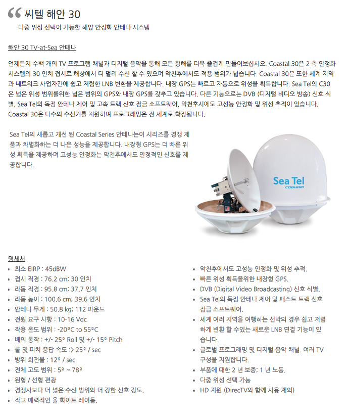 해안 30 TV-at-Sea 안테나