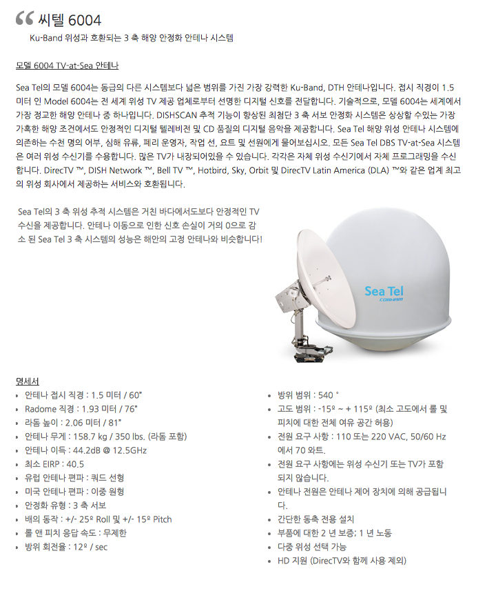 Ku-Band 위성과 호환되는 3 축 해양 안정화 안테나 시스템