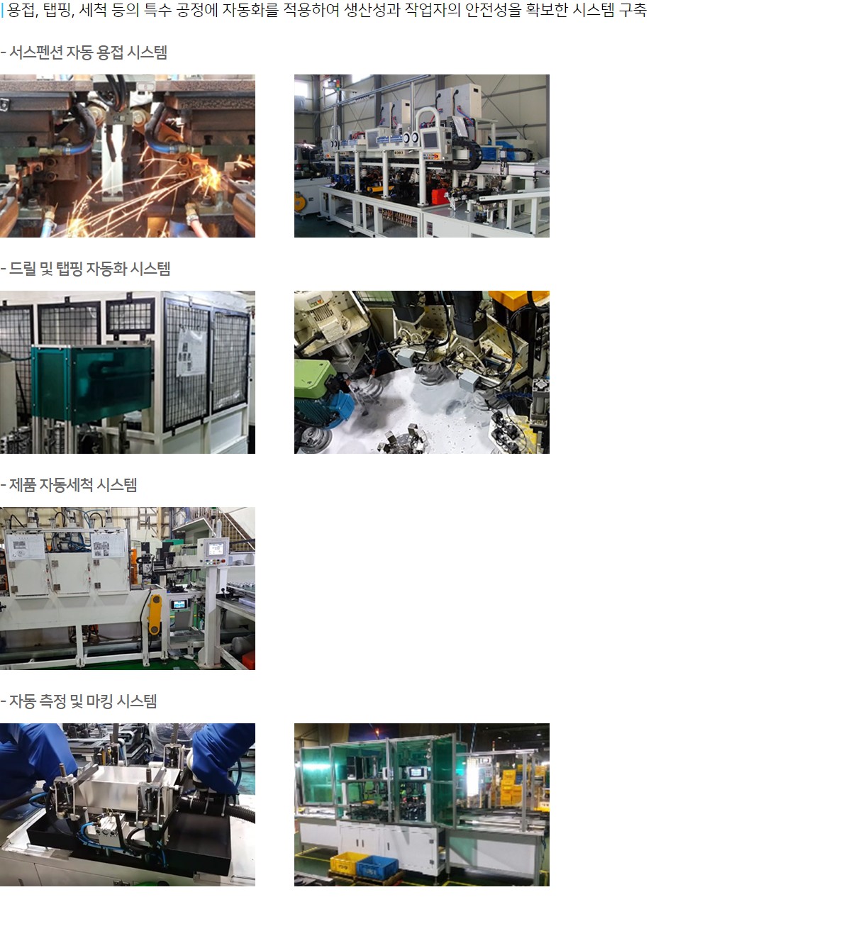 용접, 탭핑, 세척 등의 특수 공정에 자동화를 적용하여 생산성과 작업자의 안전성을 확보한 시스템 구축