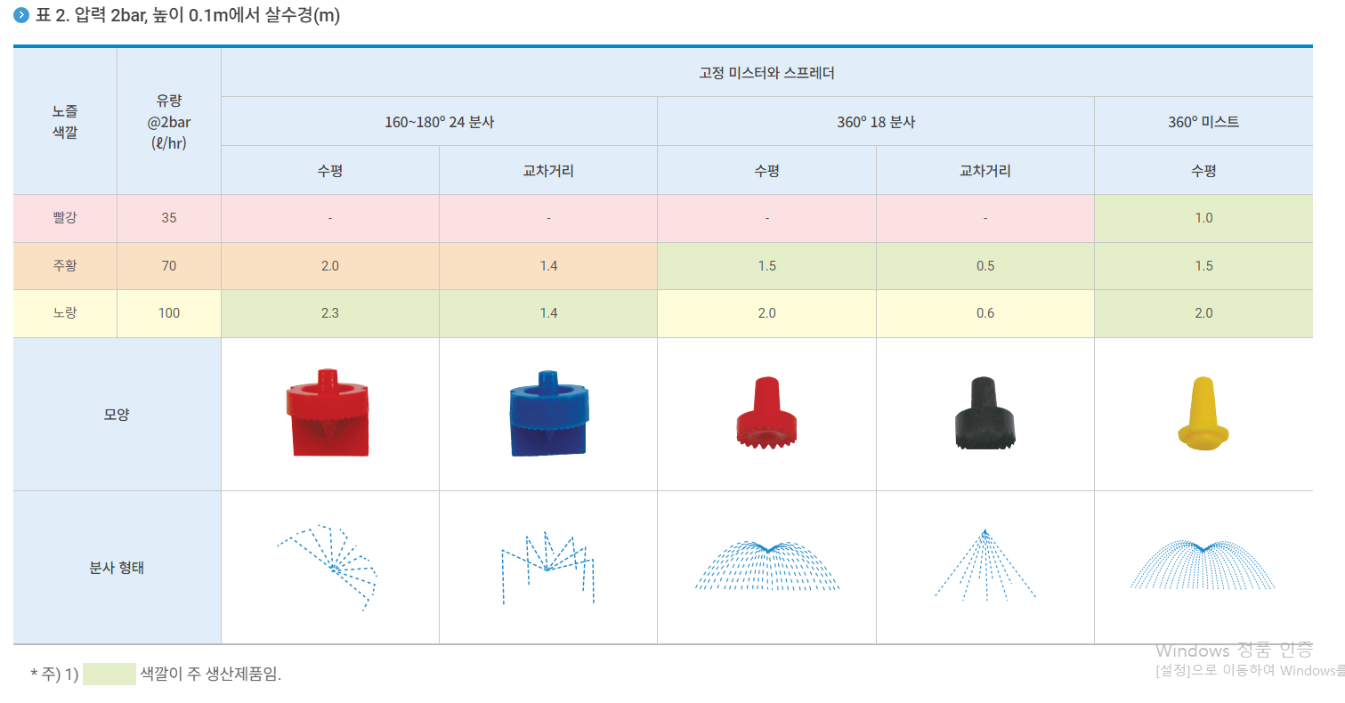 4) 부분 혹은 완전한 원형 형태 살수 : 160~180도, 360도