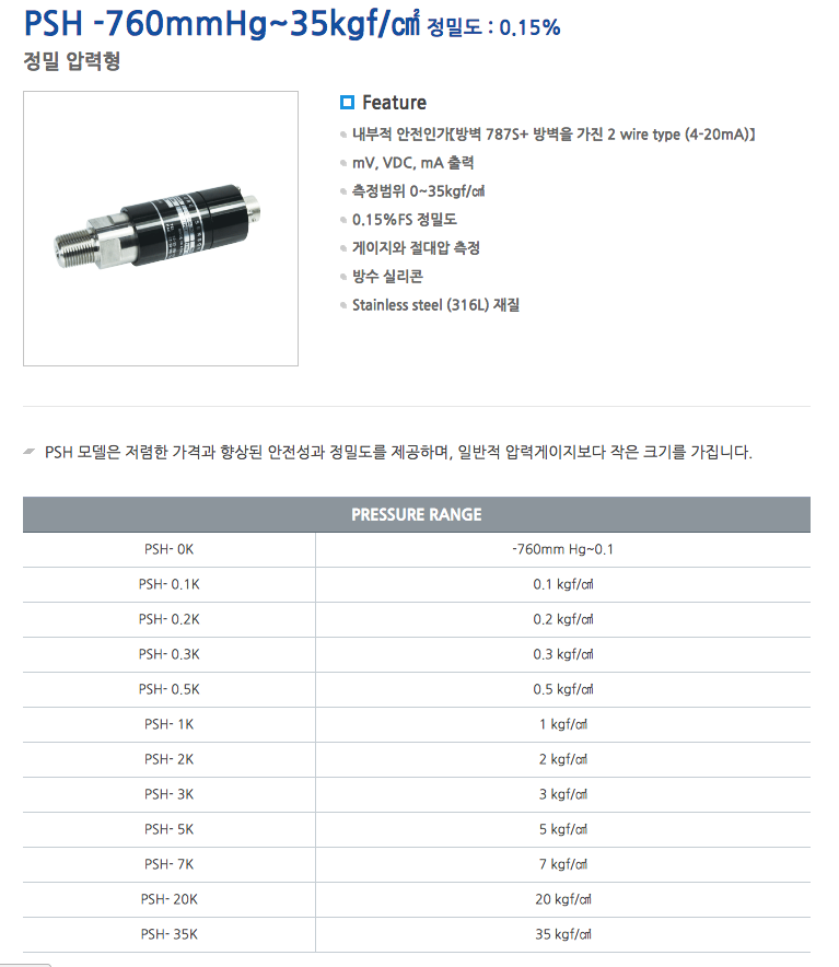 | 모델명 | PSH -760mmHg~35kgf/㎠ | 상태 | |