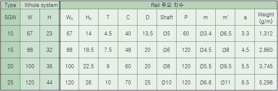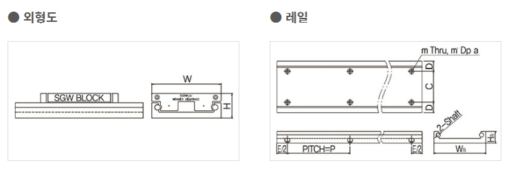 ※ E는 레일 총길이 L에 가능한 PITCH를 제외한 나머지 길이입니다.