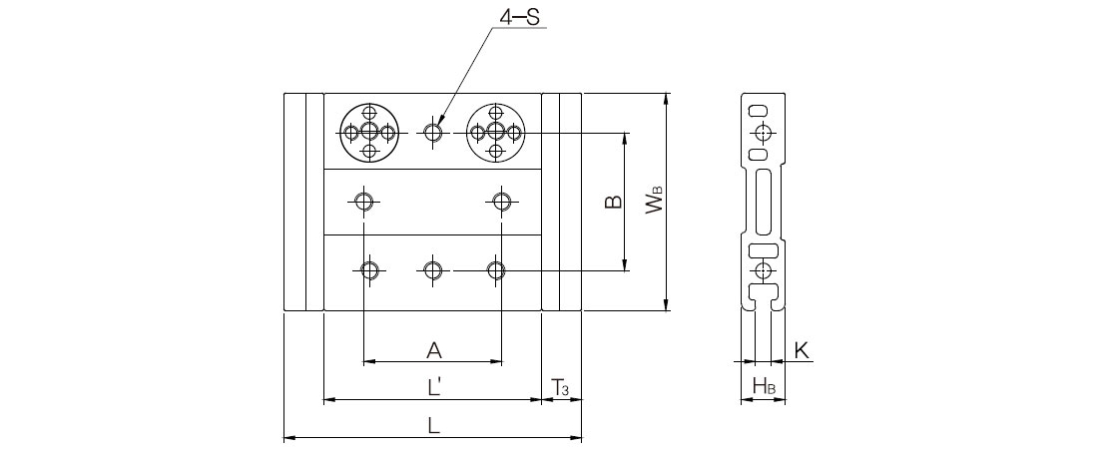 ※ E는 레일 총길이 L에 가능한 PITCH를 제외한 나머지 길이입니다
