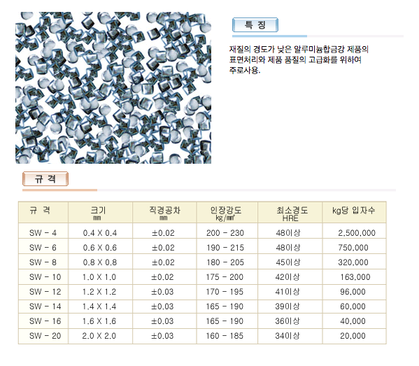 재질의 경도가 낮은 알루미늄합금강 제품의 표면처리와 제품 품질의 고급화를 위하여 주로사용