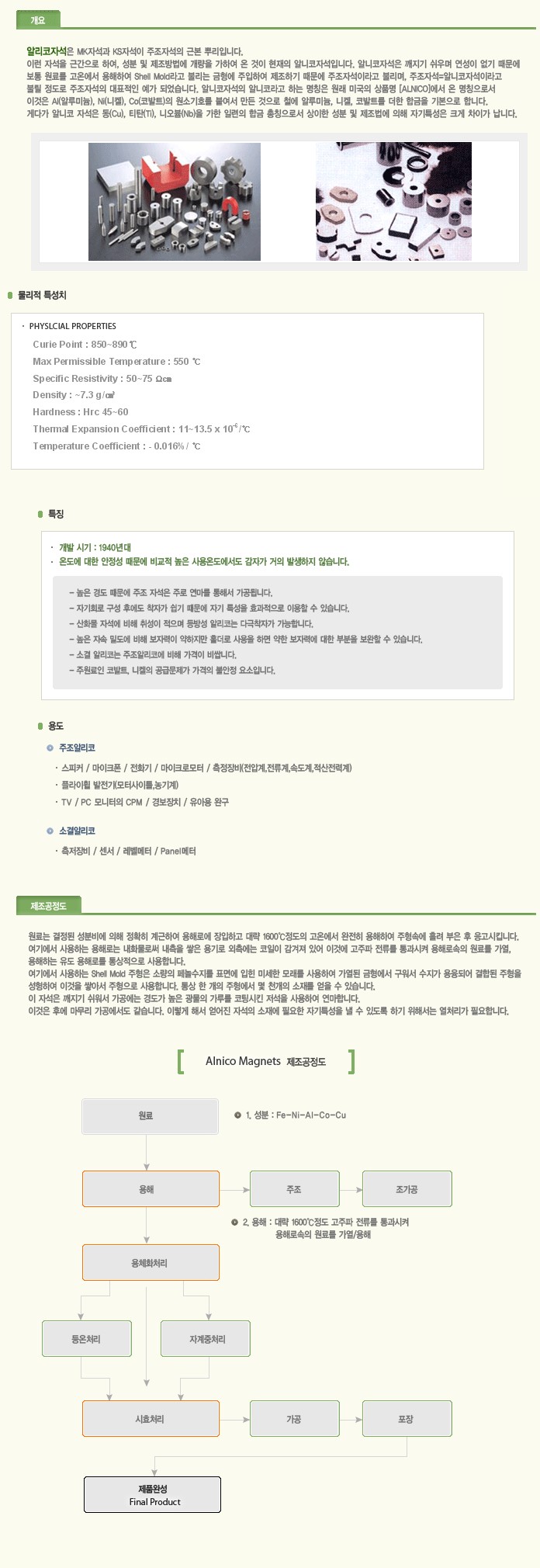 | 제품명 | 알리코 자석 | ||