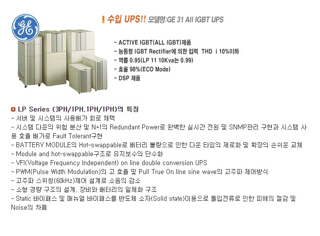 | 모델명 | GE 31 ALL IGBT UPS | ||