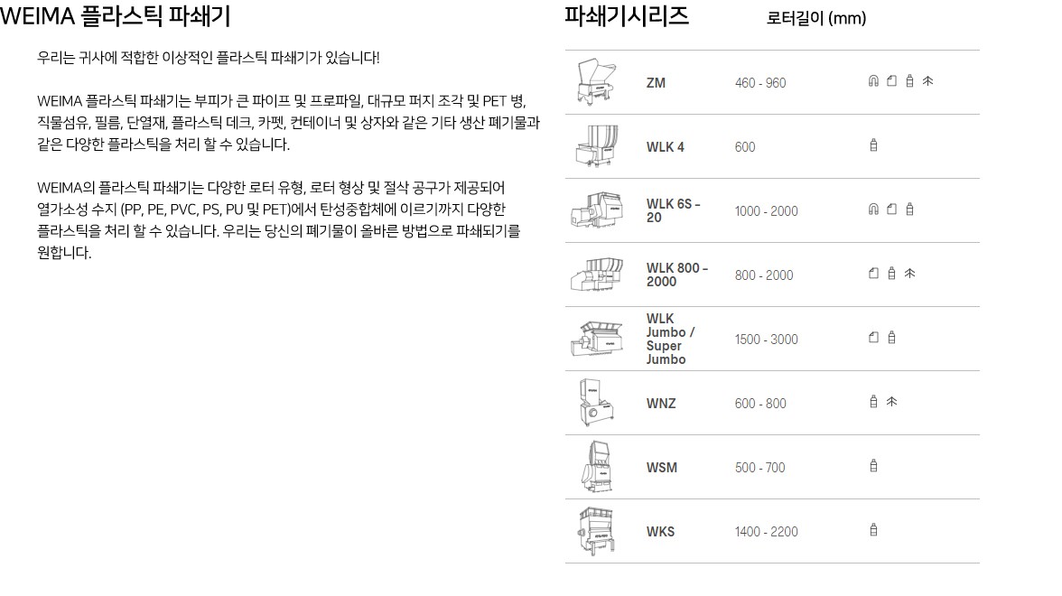 | 제품분류 | 고무/플라스틱/합성수지파쇄기 | ||