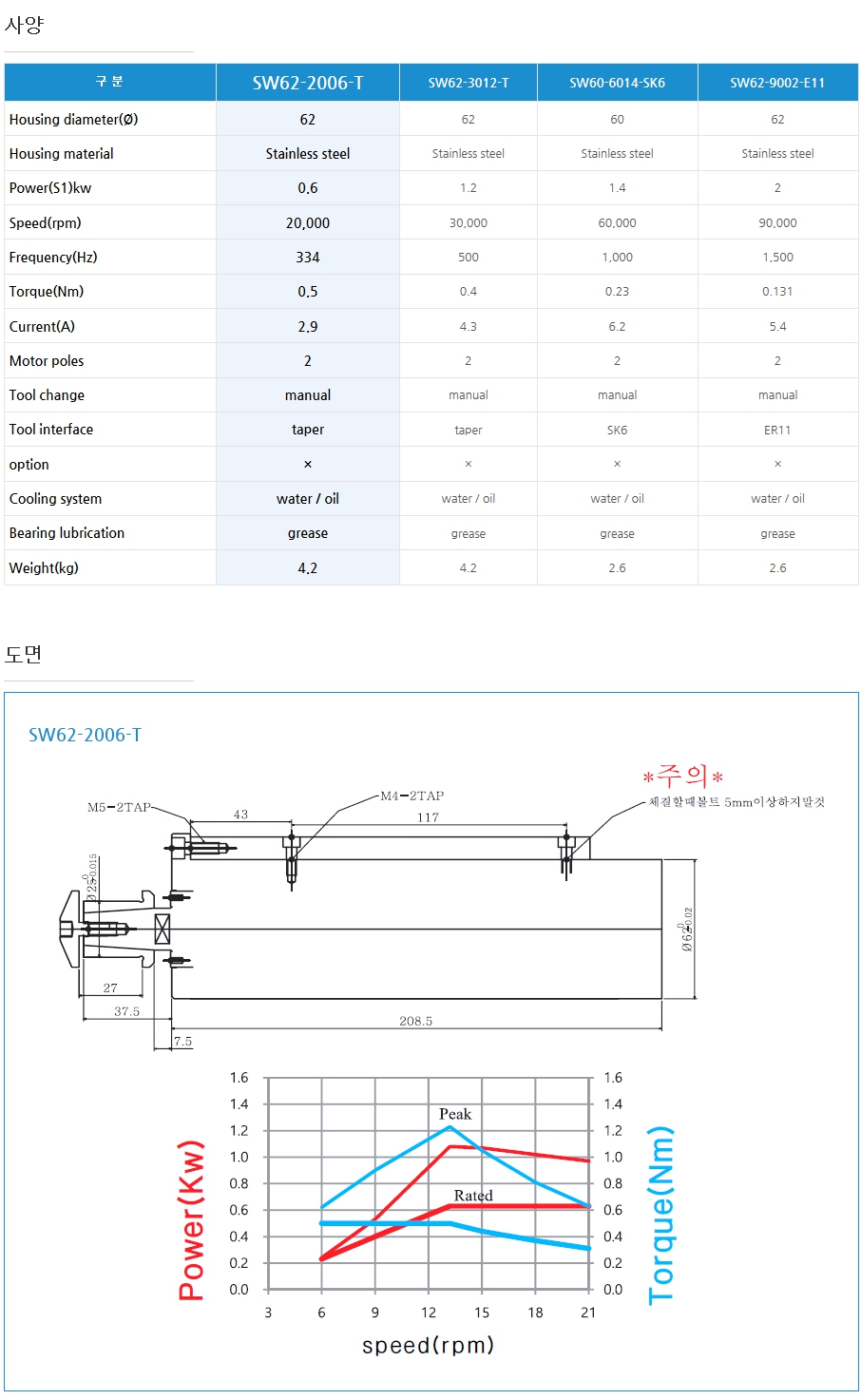 조각, 디버링, 밀링, 드릴링, 탭핑 등 공작기계용 스핀들