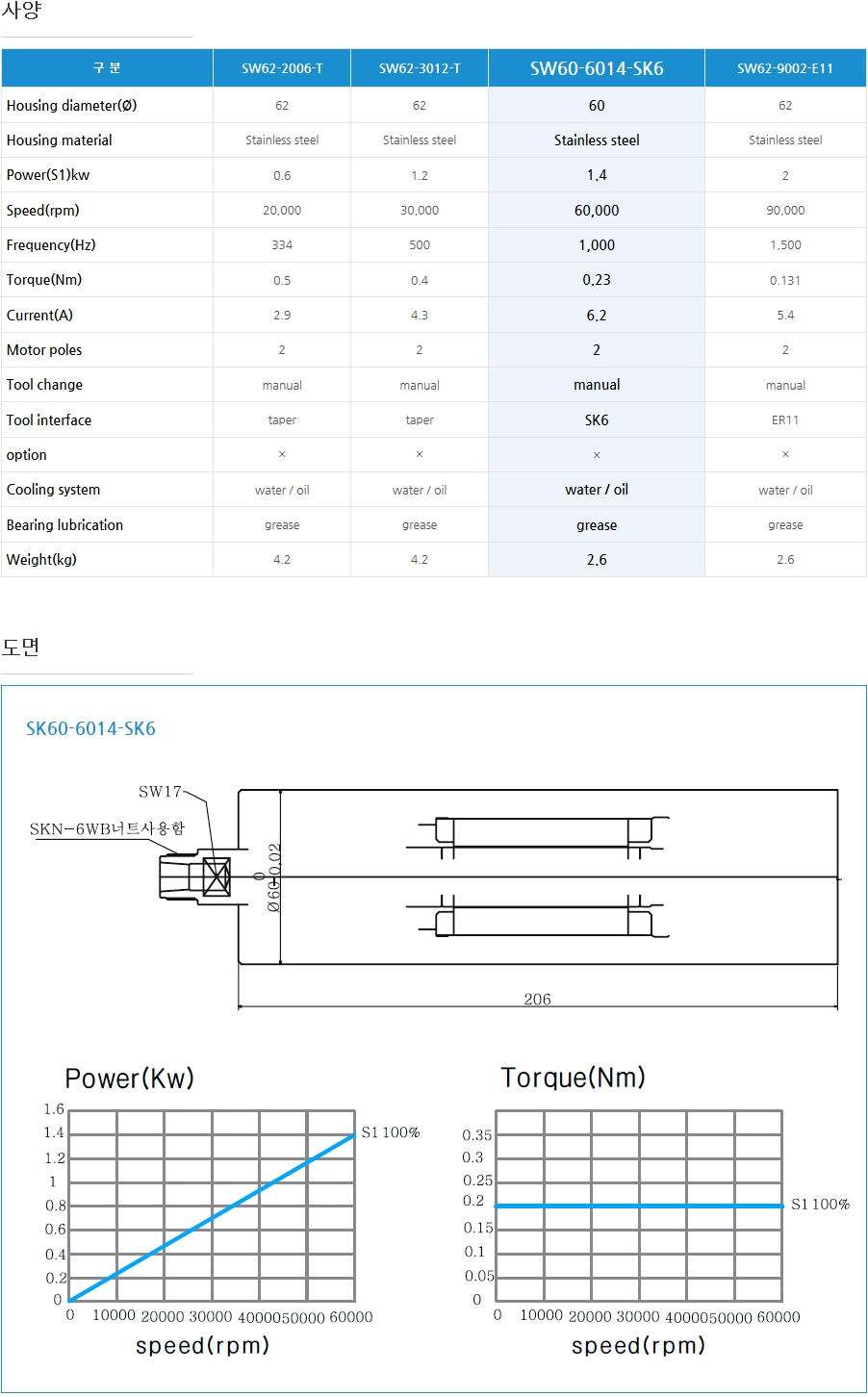 조각, 디버링, 밀링, 드릴링, 탭핑 등 공작기계용 스핀들