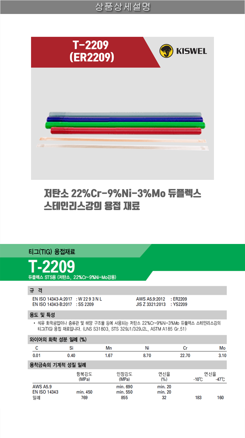 [고려용접봉] T-2209 (ER2209) 알곤 티그(Tig)용접봉 2.0, 2.4, 3.2mm (5kg)