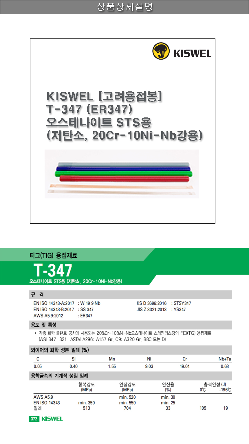 T-347 (ER347) 알곤 티그(Tig)용접봉 2.0, 2.4, 3.2mm (5kg)