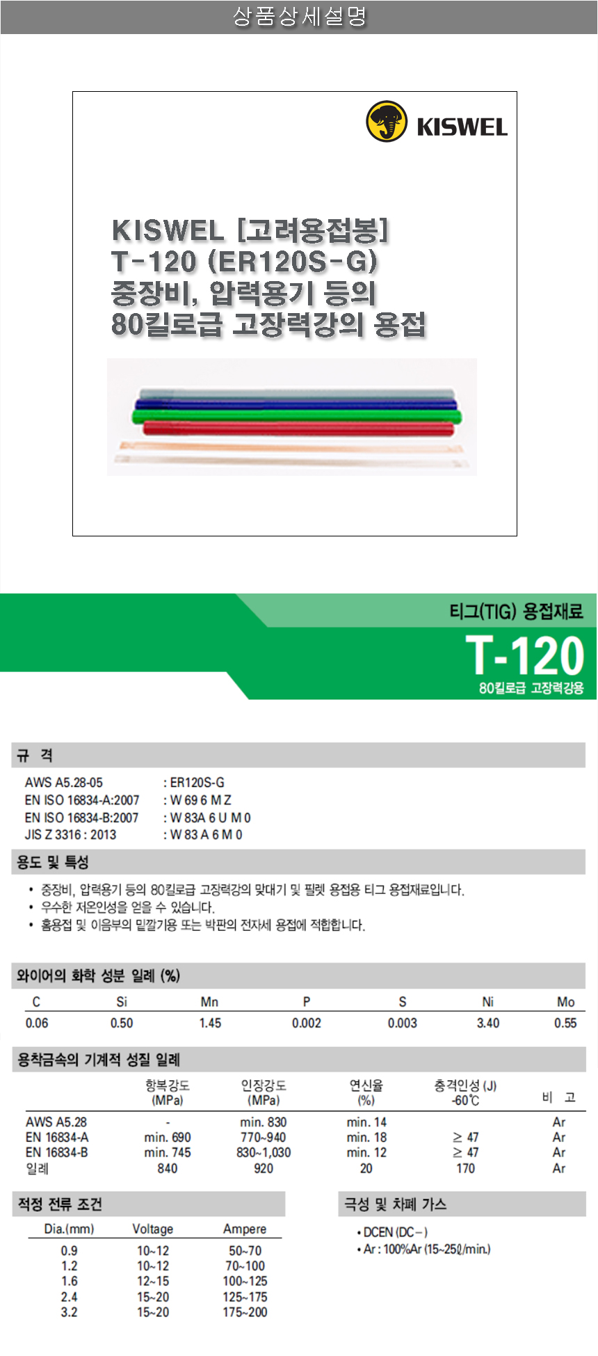 [고려용접봉] T-120 (ER120S-G) 알곤 티그(Tig)용접봉 2.4mm (5kg)