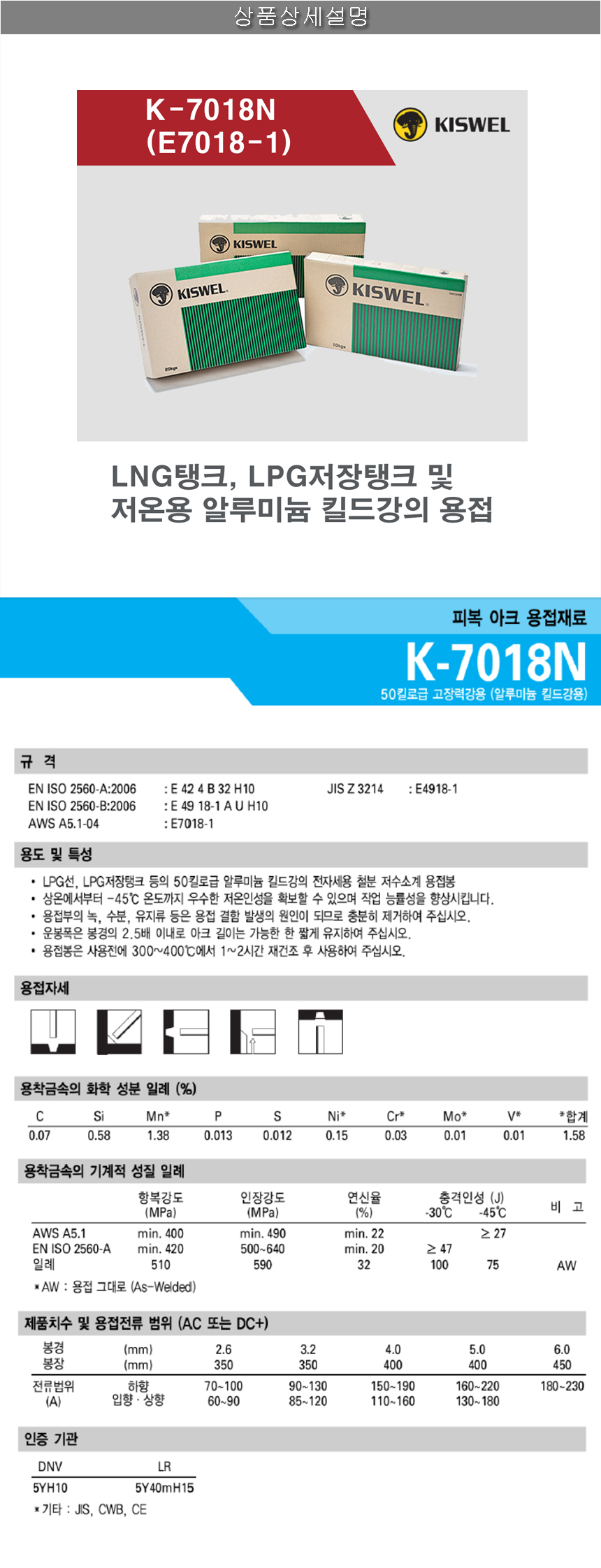 [고려용접봉] K-7018N (E7018-1) 피복아크 용접봉 2.6, 4.0, 5.0mm (5kg)