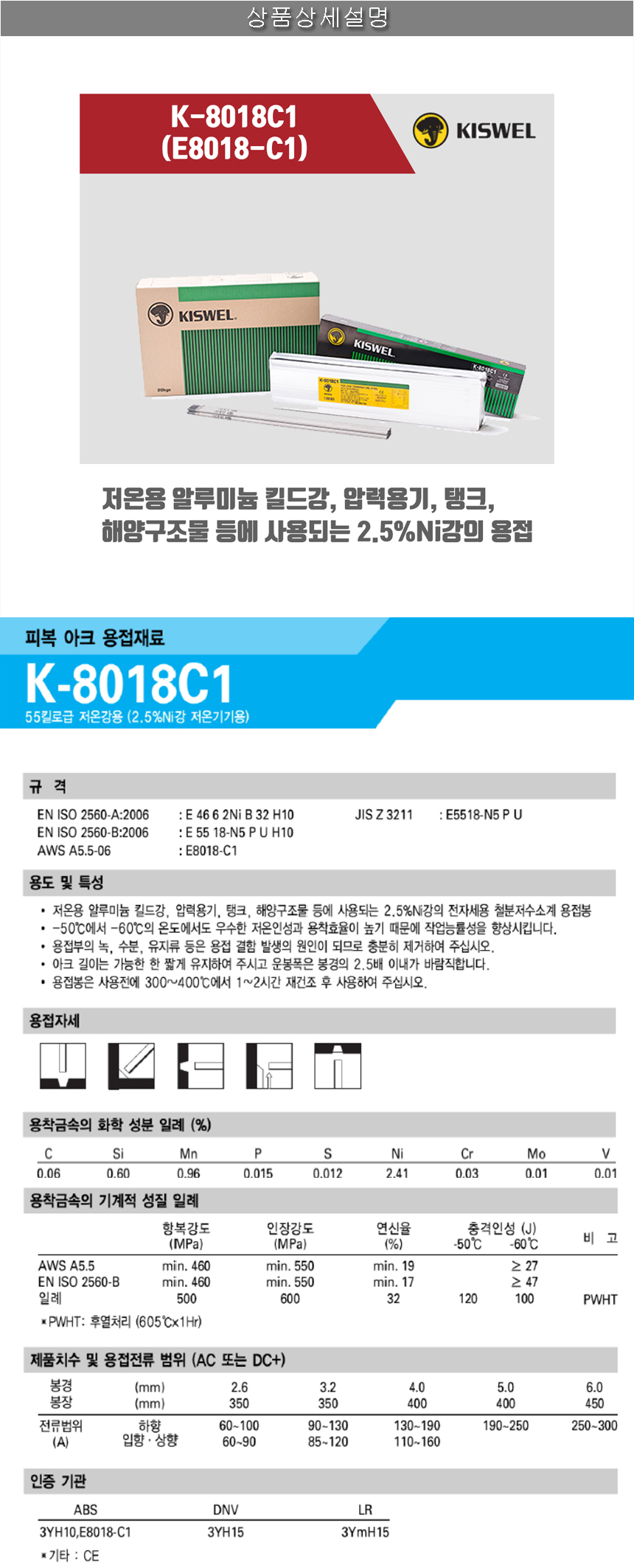 [고려용접봉] K-8018C1 (E8018-C1) 피복아크 용접봉 4.0mm (5kg)