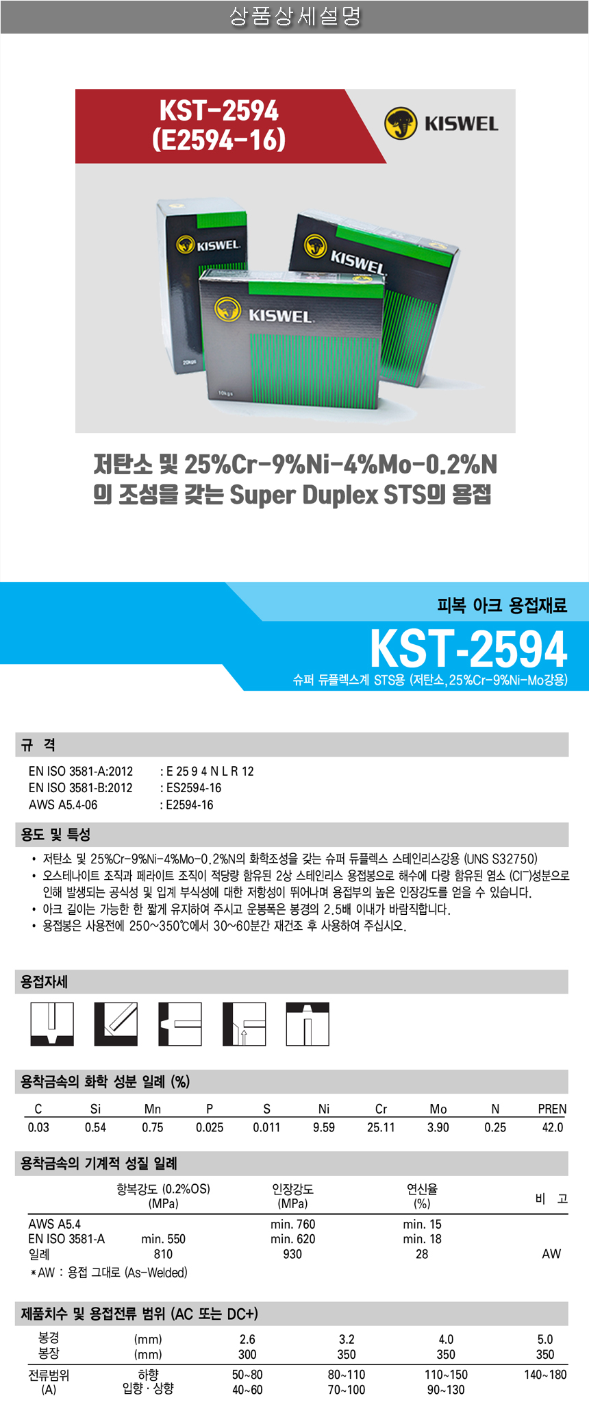 [고려용접봉] KST-2594 (E2594-16) 피복아크 용접봉 4.0mm (5kg)