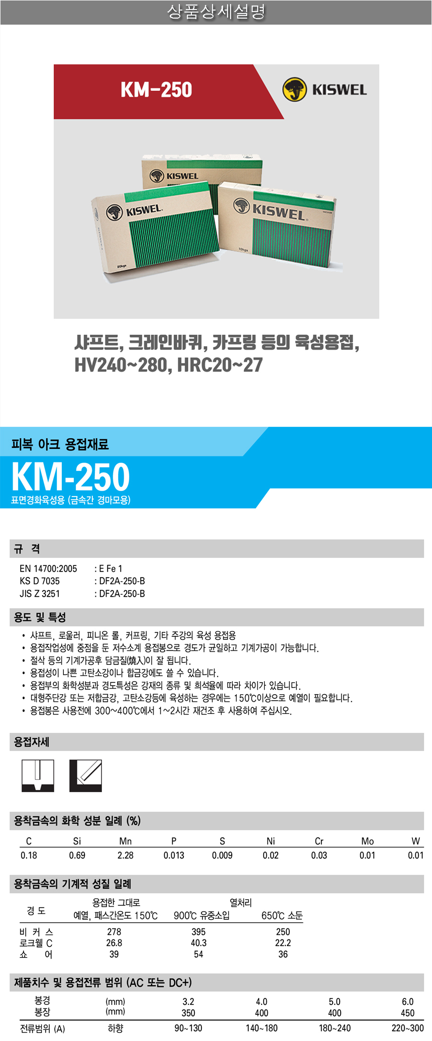 [고려용접봉] KM-250 (Hv240-280) 피복아크 용접봉 4.0mm (5kg)