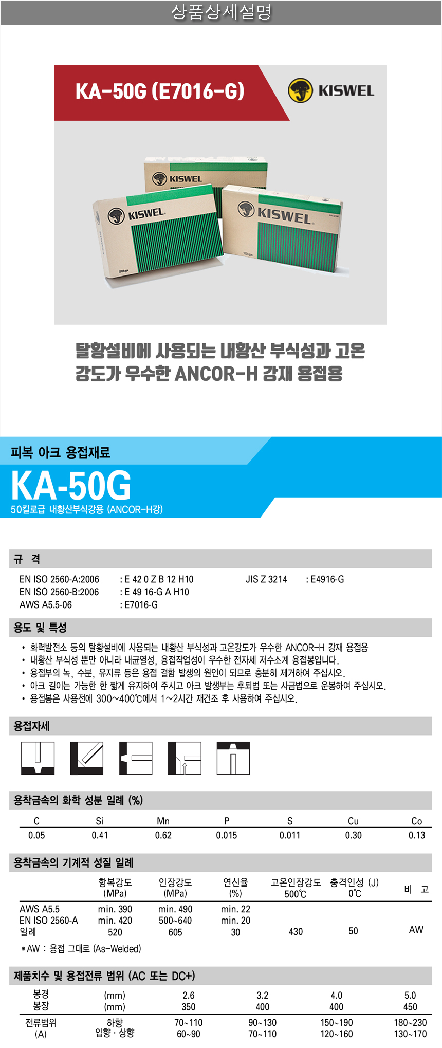 [고려용접봉] KA-50G (E7016-G) 피복아크 용접봉 3.2mm (5kg)