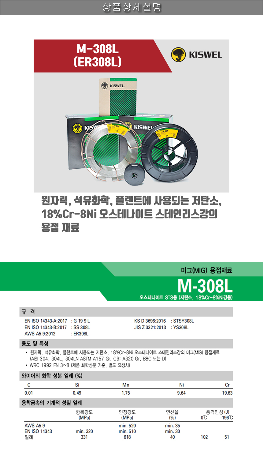 | 모델명 | M-308L (ER308L) |