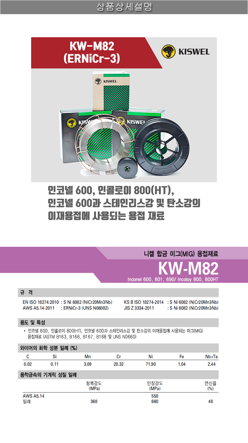 | 모델명 | KW-M82 (ERNiCr-3) |